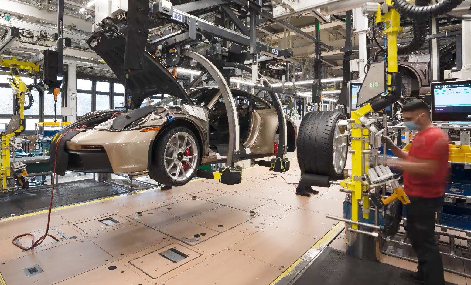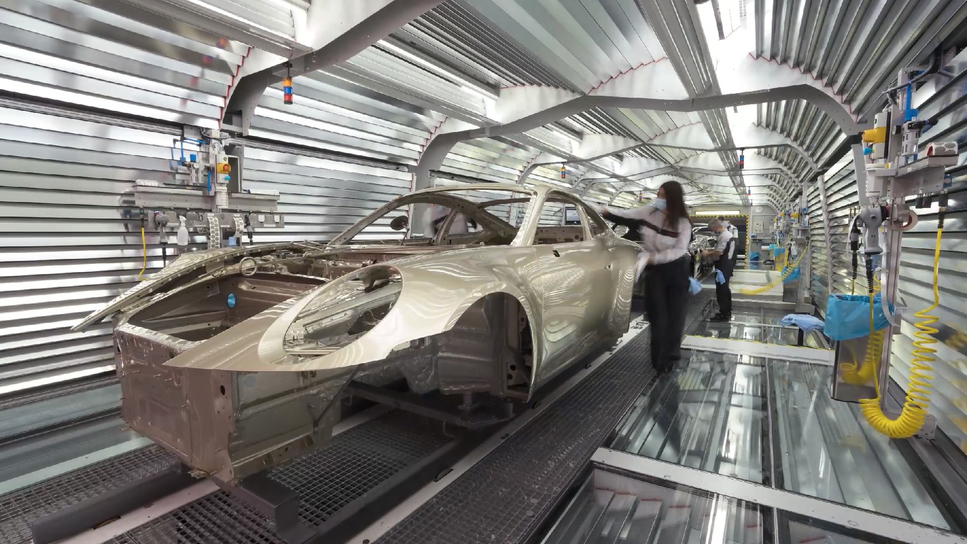 A time-lapse video showing the entire process of building a special 911 GT3, part of the Paint to Sample program, at the Porsche factory in Zuffenhausen, Germany.