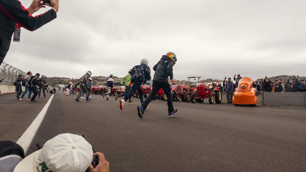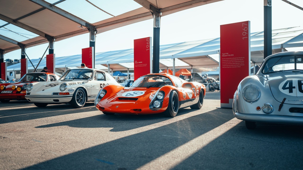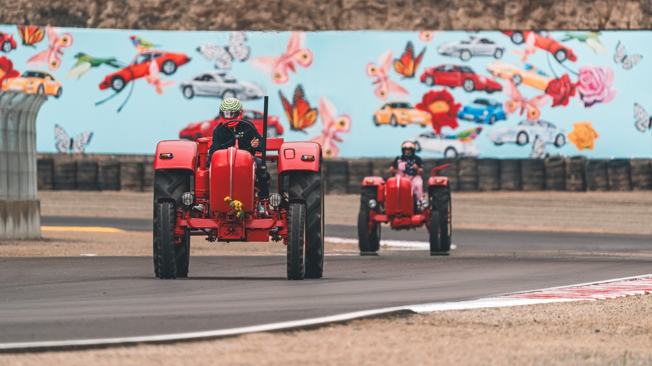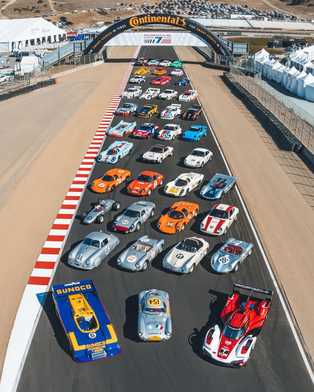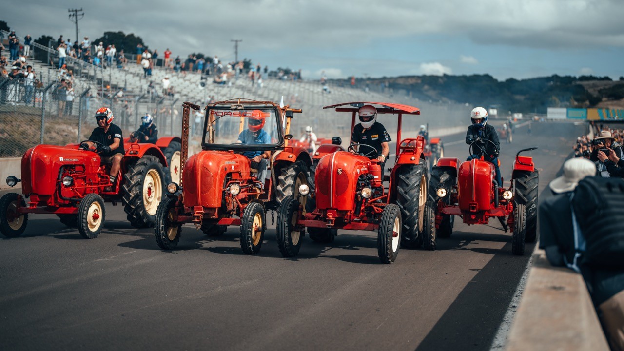 For Porsche's 75th Anniversary, Rennsport 7 was held at Laguna Seca in California, becoming the largest gathering of Porsche enthusiasts in history. This event saw over 300 porsche vehicles in attendance, the debut of the 911 GT3 R Rennsport, a first ever Esports arena at an event, and tractor races.